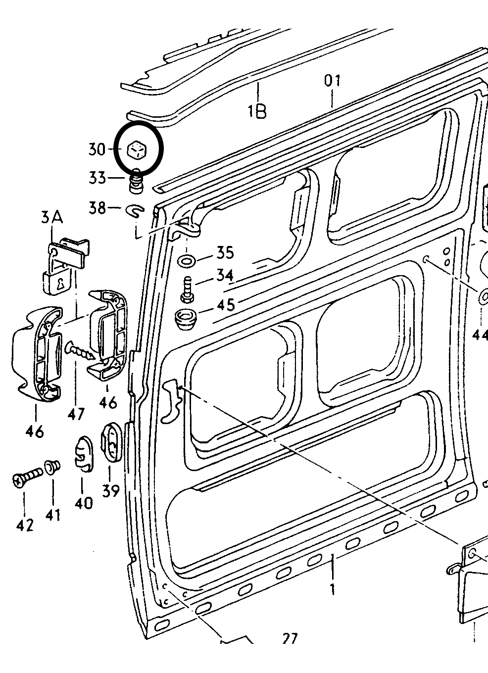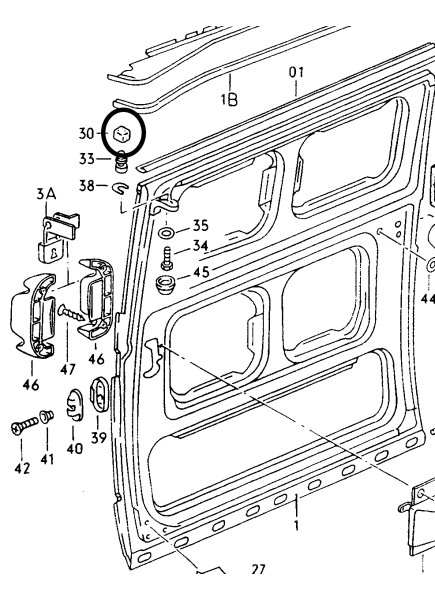 Nylonblokje voor T3 schuifdeur boven
