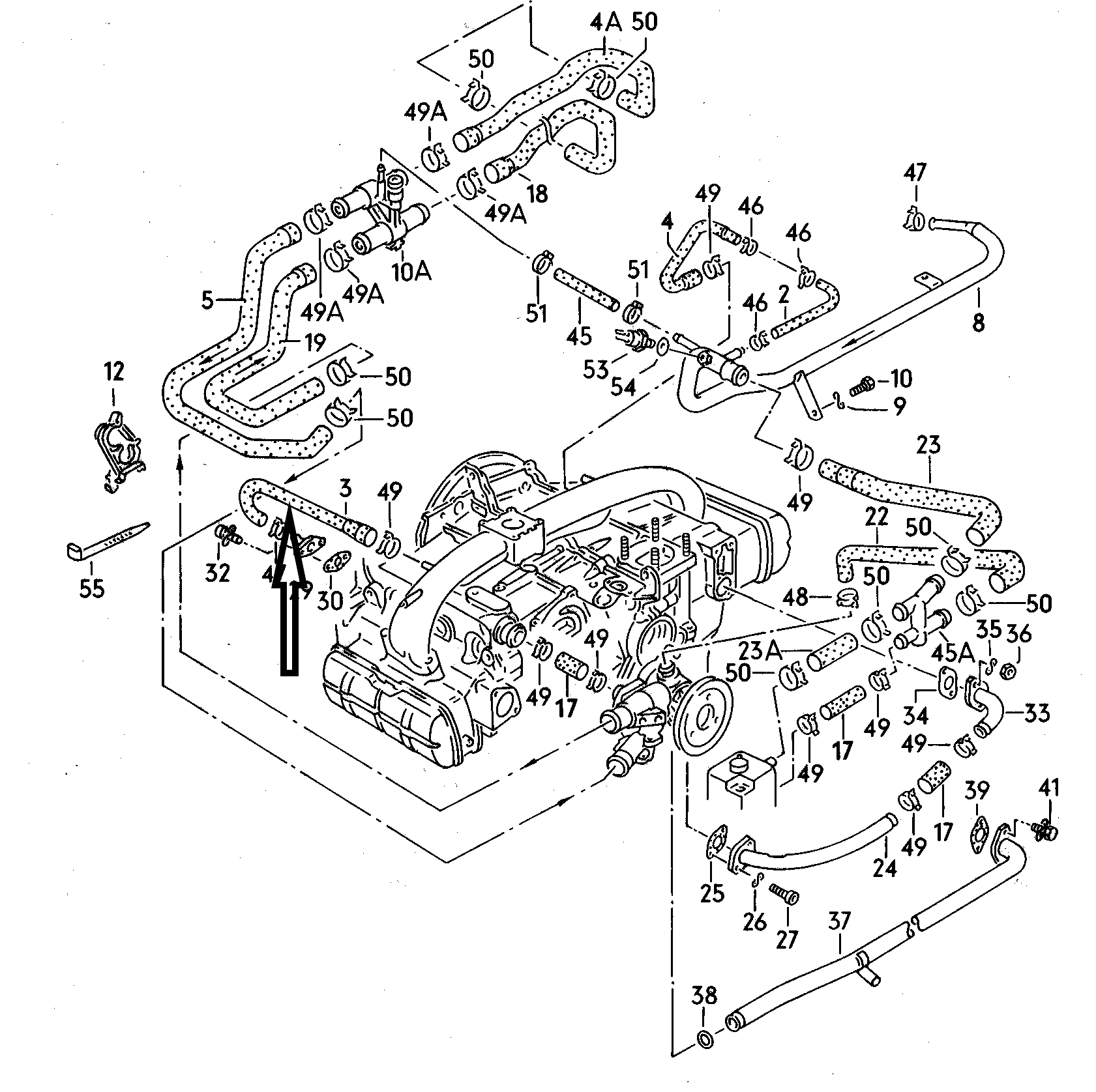 waterslang tussen thermostaat en verdeler WBX