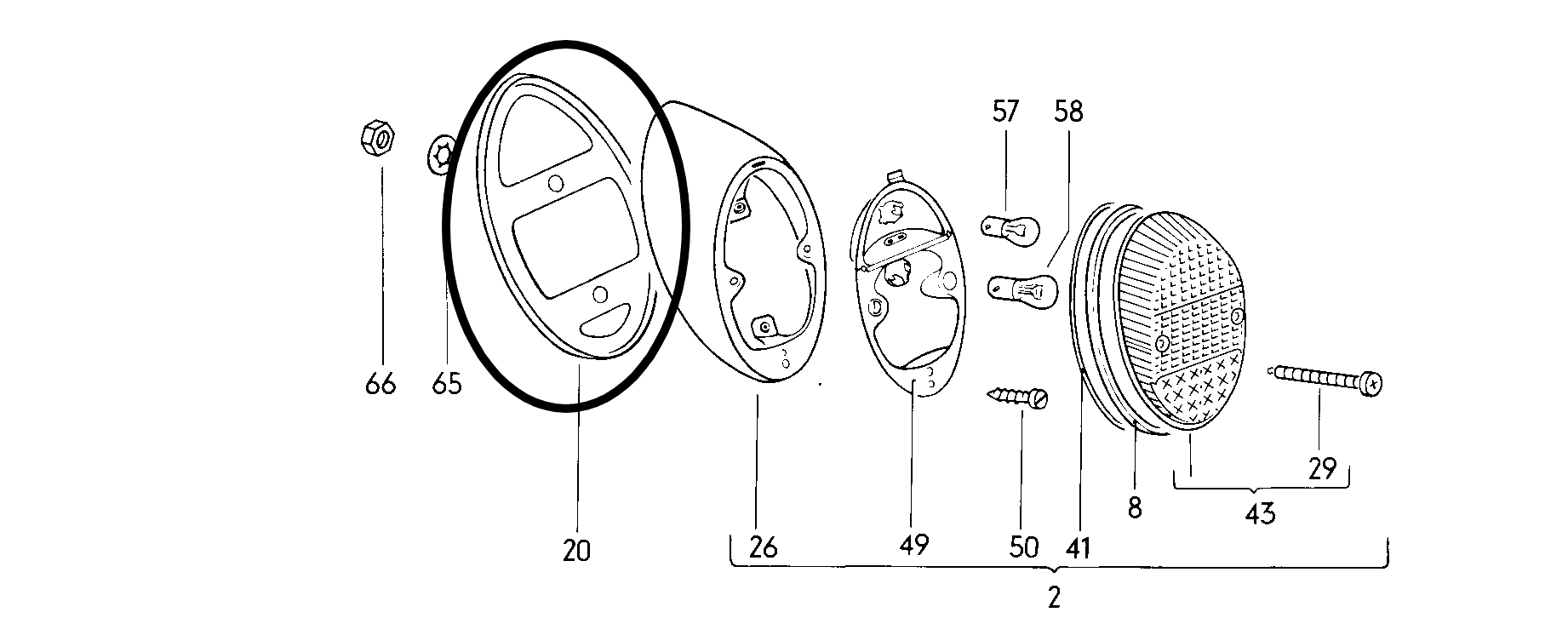 achterlicht rubber van 61 tot 67 links & rechts