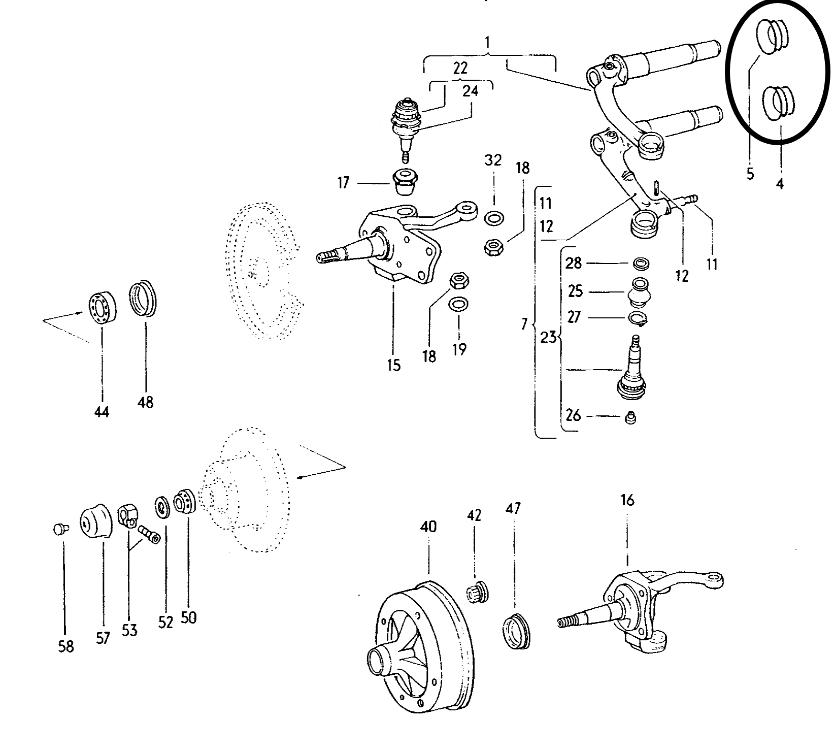 vooras keering tussen as en draagarm na 65